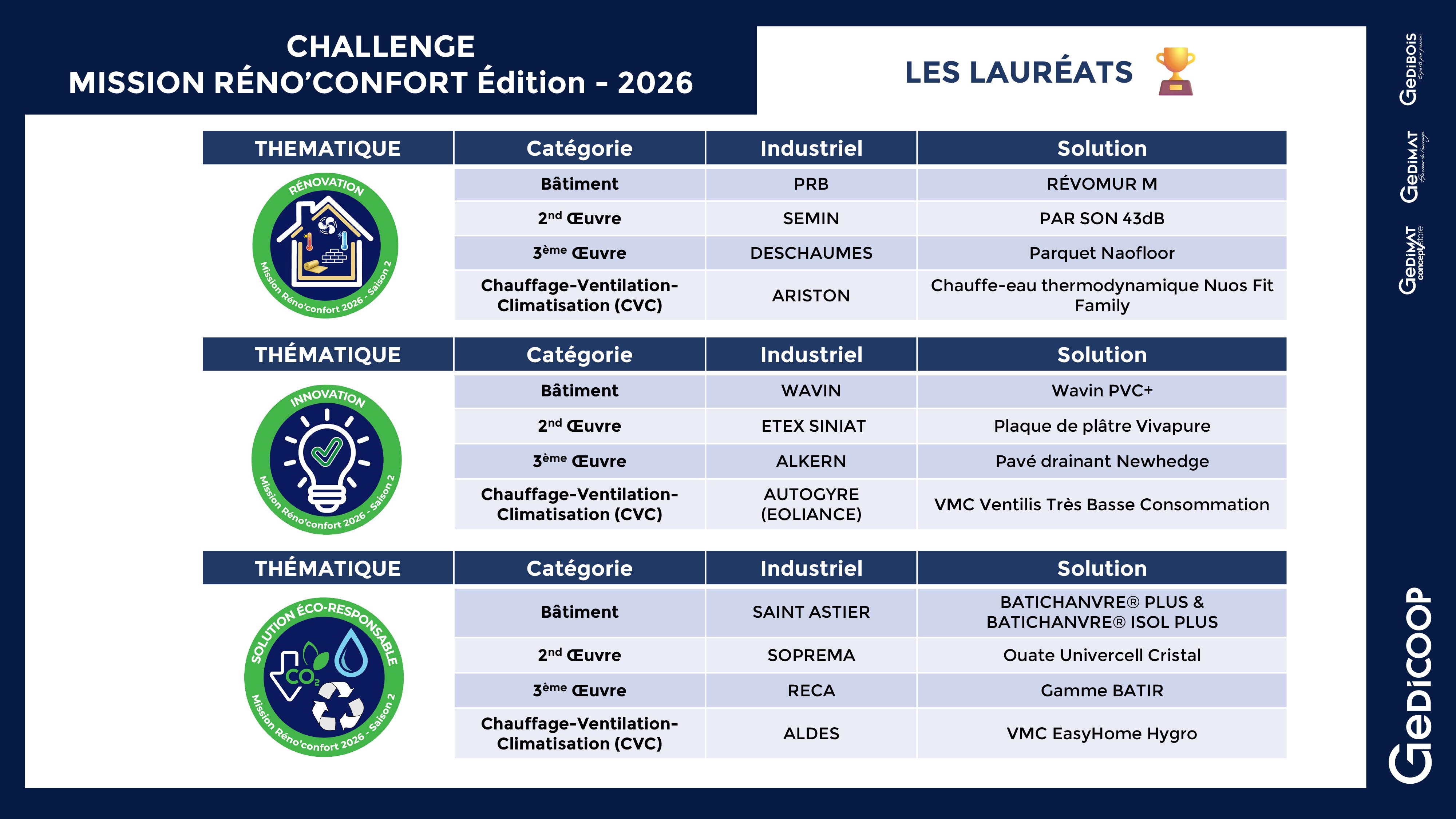 Gedicoop - Lauréats Challenge Mission Reno Confort 2026